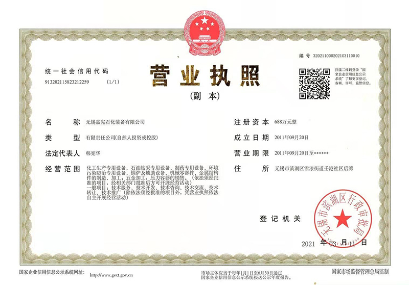 無錫嘉憲石化裝備有限公司地處風景秀麗的太湖之濱素有中國化工設備之鄉----無錫南泉。與美麗如畫的太湖相鄰。北依滬寧高速、京滬鐵路、京杭大運河,南距環太湖高速南泉出口處2000米,東接312國道,西連接錫宜高速。是一家是集石油、生物、化工、制藥等設備的生產、銷售、安裝、調試等一條龍服務的復合型化工裝備制造企業。公司技術力量雄厚,生產設備齊全,生產工藝先進,質量上乘,價格合理,售后完善,贏得了廣大用...